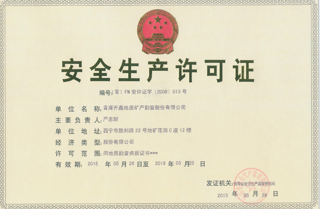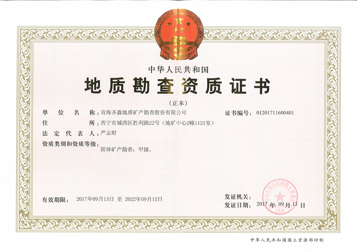 青海齊鑫地質(zhì)礦產(chǎn)勘查股份有限公司是集勘查、監(jiān)理、咨詢于一體的科技型礦業(yè)技術(shù)服務(wù)企業(yè),下設(shè)有青海金鑫工程監(jiān)理有限責(zé)任公司、青海金晟工程咨詢有限責(zé)任公司兩家全資控股子公司。并具有固體礦產(chǎn)勘查甲級(jí)資質(zhì);地質(zhì)鉆(坑)探勘查乙級(jí)資質(zhì);地球物理勘查乙級(jí)資質(zhì);地球化學(xué)勘查乙級(jí)資質(zhì);地質(zhì)災(zāi)害治理工程勘查丙級(jí)資質(zhì);地質(zhì)災(zāi)害治理工程施工丙級(jí)資質(zhì)。礦山工程監(jiān)理乙級(jí)資質(zhì);房屋建筑監(jiān)理乙級(jí)資質(zhì);市政公用工程監(jiān)理乙級(jí)資質(zhì);機(jī)電安裝工程監(jiān)理乙級(jí)資質(zhì);水利水電工程監(jiān)理乙級(jí)資質(zhì);地質(zhì)災(zāi)害治理工程監(jiān)理乙級(jí);工程咨詢丙級(jí)資質(zhì)等。